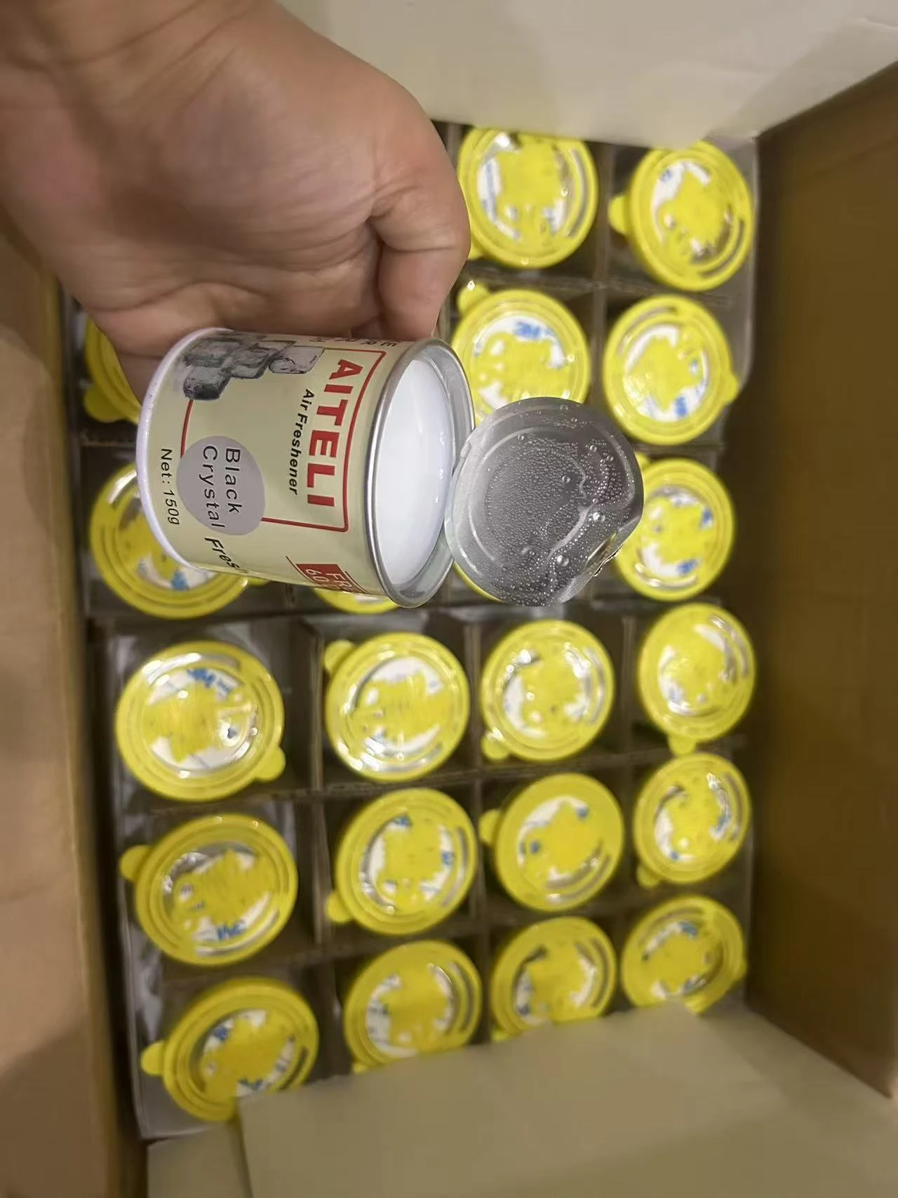 Long-lasting gel air freshener that eliminates odours and refreshes hotel rooms, offices, and bathrooms.