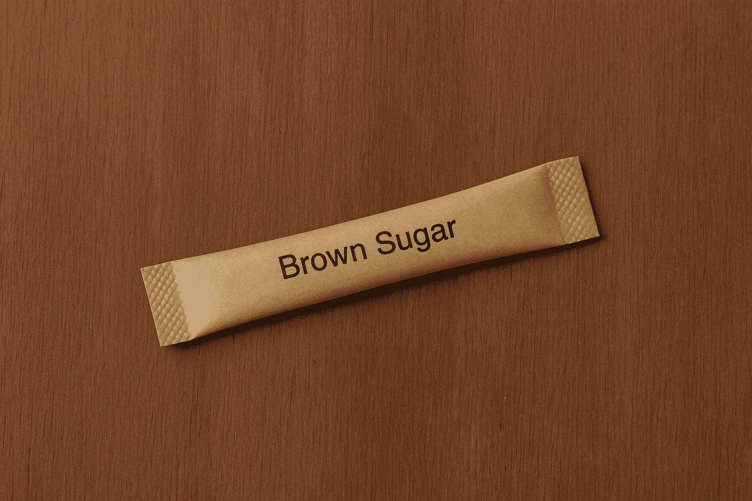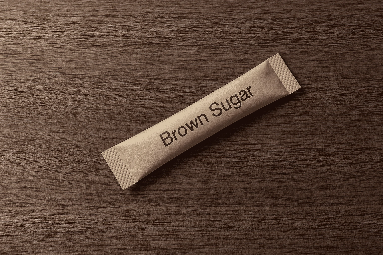 Individually packed 5g brown sugar sticks for hotels, cafés, and restaurants.