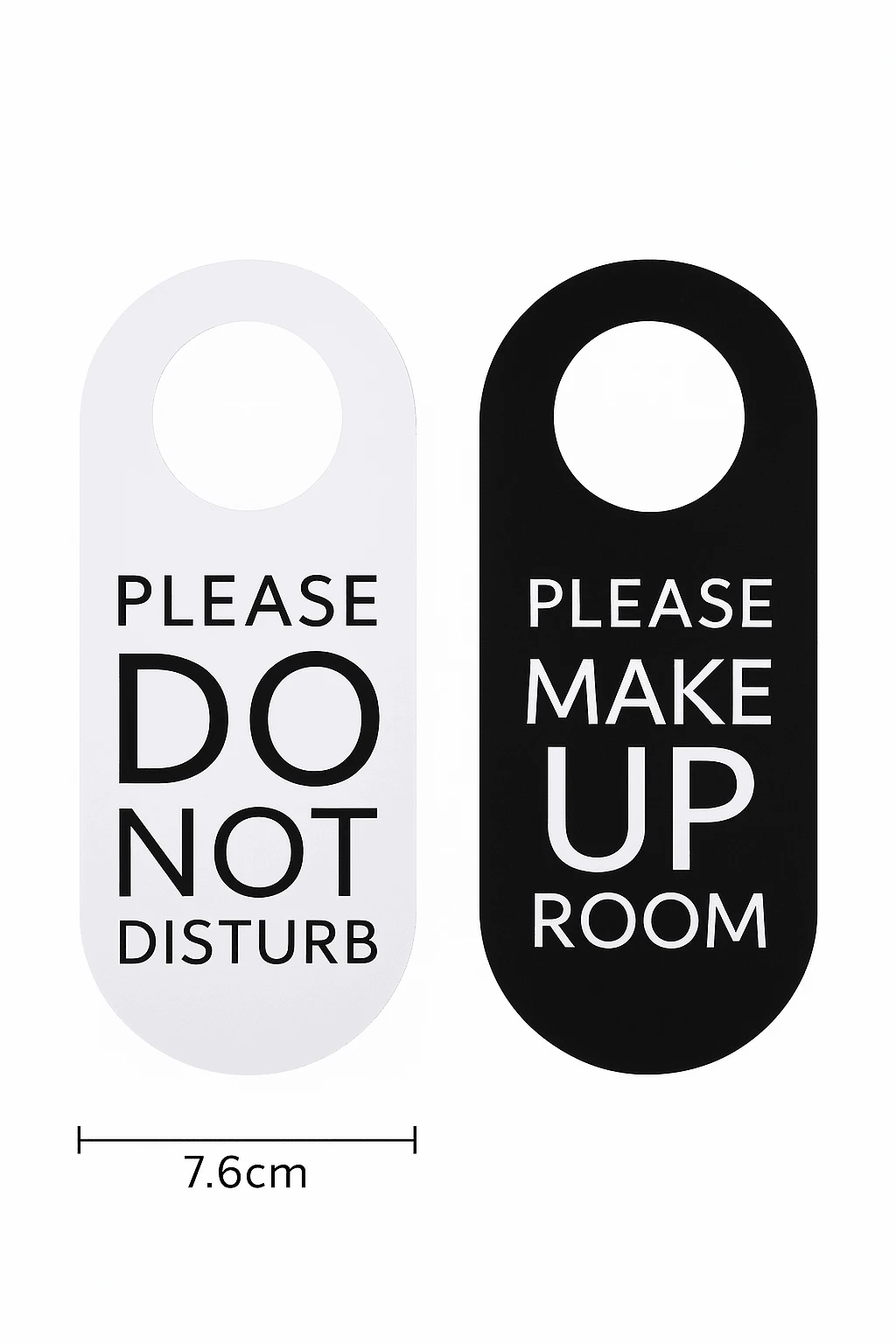 The DOS LUNAS PVC Hotel Door Hanger is a sleek and durable dual-sided sign designed for professional hotel use.